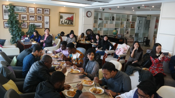 Program Director, Professor Lin Lin Niu, started the event by giving a warm welcome to the students representing more than 12 countries and talked about her experience spending her new year far away from home when she studied in Europe. Afterwards, we enjoyed a lunch together while our classmates Aseem and Solomon delighted us with some cheerful songs.