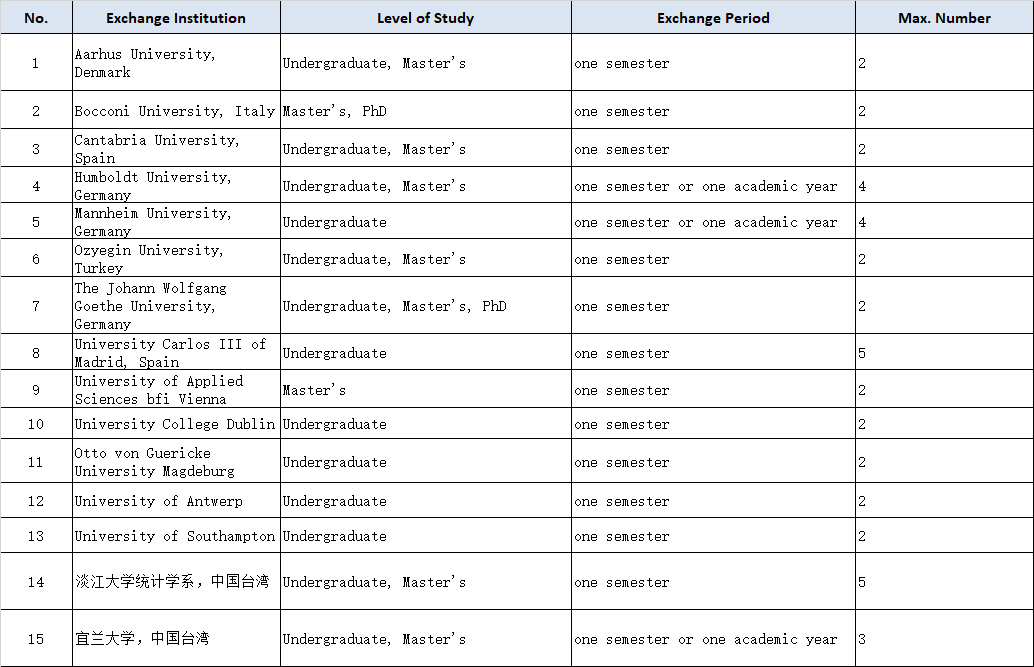 * Undergraduate applicants should have completed at least their first two years of studies at XMU before they enter the exchange program of the host university.