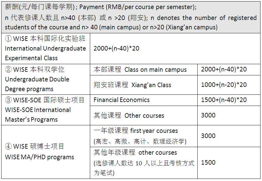 助教待遇分项目与修课人数不同 (depends on program and class size):