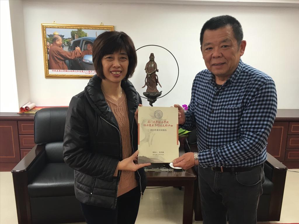 2016年1月7日,经济发展与传统文化研究中心主任张家麟,应邀访问金门大学,与金门大学副校长陈奇中、陈建民,教务长李锡捷,研发长余泰魁,管理学院院长董燊,健康护理学院院长卢冠霖及院系主任等举行座谈会,探讨厦...查看更多 -