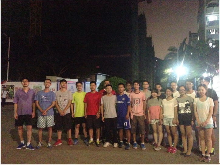 本次活动是新学期第一次“快乐跑”,得到了同学的积极响应,共收到超过30名同学的报名,其中包含了WISE的研一、研二以及本科国际化实验班国际生,还有经济学院和管理学院的同学。27日晚上七点半就开始有人陆续到公寓门口集合,临近八点全部人员到齐后,大家先集体做跑前的热身活动。