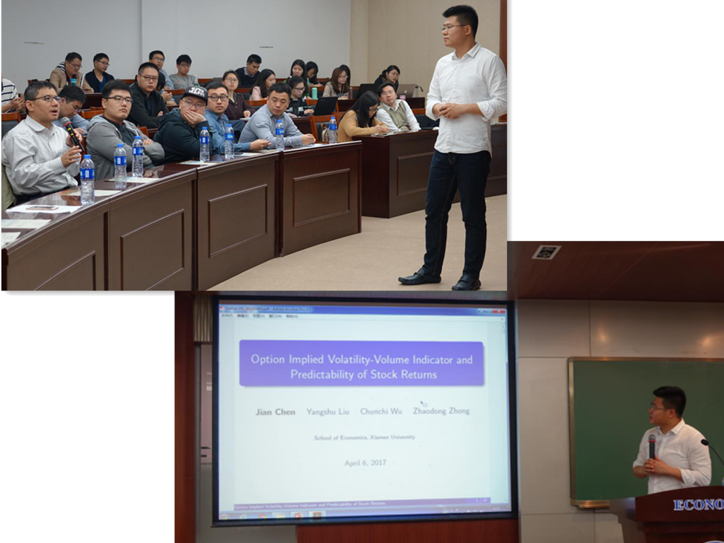 4月6日,俄亥俄州立大学金融学讲座教授张橹受邀来访厦门大学经济学科,参加以资产定价为主题的学术研讨会,会议吸引了近百名师生参加。 张橹教授在国际顶级金融期刊发表许多有影响的学术论文,其博士论文“The Value Premium”获得美国金融学会和Journal of Finance 2005年度Smith-Breeden最优论文奖,同时,他是Journal of Financial Economics 和Journal of Financial and Quantitative Analysis的副主编,还是宏观金融学会(Marco Finance Society)的创会主席。