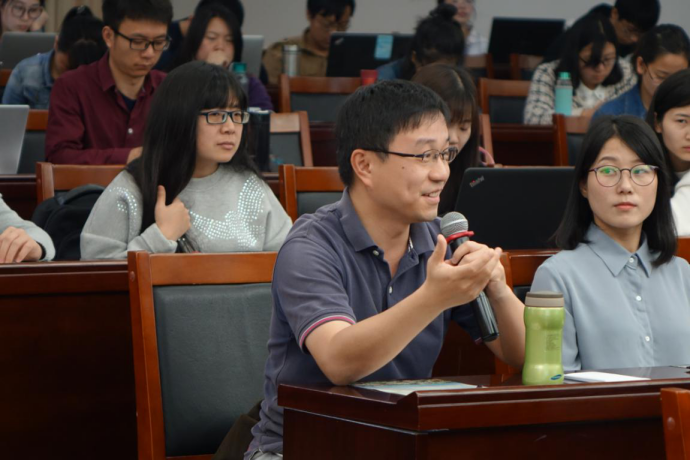 张橹教授认真聆听了三位青年教师的论文,并对每一位教师的论文提出评论,还就论文中感兴趣的地方和三位教师进一步地讨论。在场参会师生也纷纷积极提问,现场气氛颇为热烈。