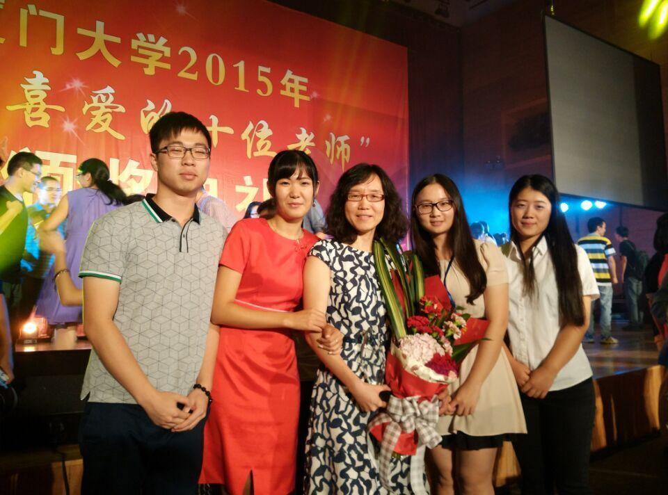 9月17日晚,厦门大学2015年“我最喜爱的十位老师”颁奖典礼在科学艺术中心隆重举行。经济学科龙小宁教授作为本次获奖的十位教师之一参加了颁奖典礼。在颁奖典礼温馨氛围里,龙小宁教授最后一位出场,在现场数百位师生热烈的掌声中接受学生代表献上的鲜花。