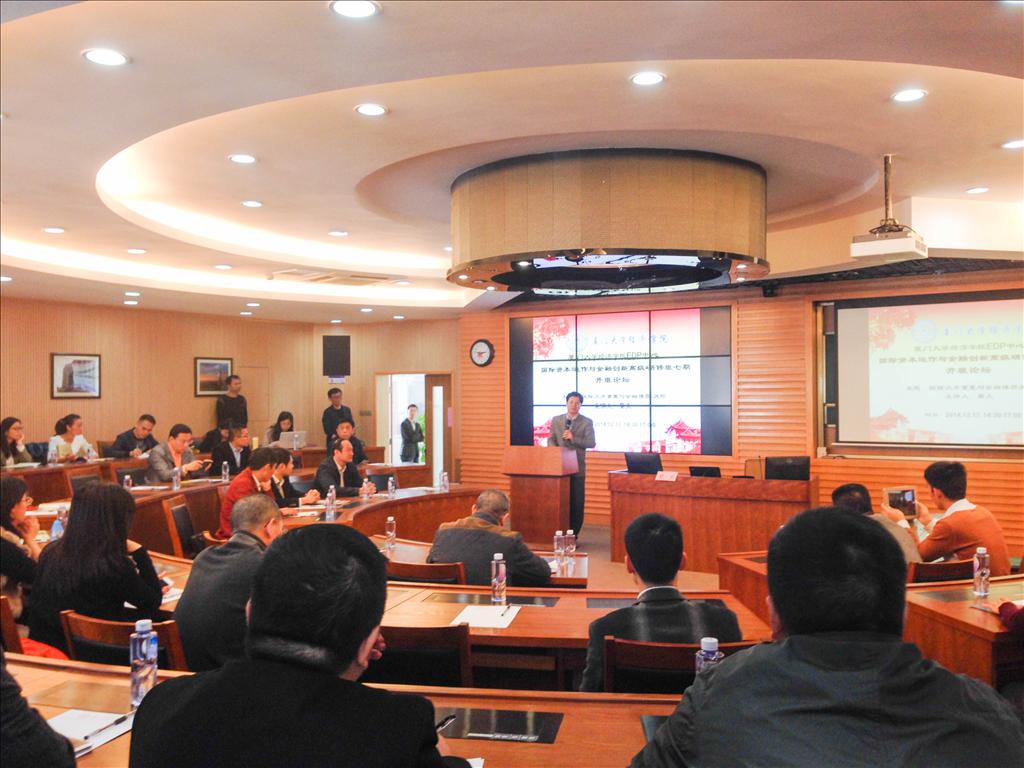 2014年12月13日下午,厦门大学经济学院EDP中心“国际资本运作与金融创新高级研修班(七期)”开班论坛在经济楼C208隆重举行。康奈尔大学教授洪永淼,厦门大学经济学院副院长张琥,经济学院EDP中心主任张定忠应邀莅临。论坛由张定忠老师主持。