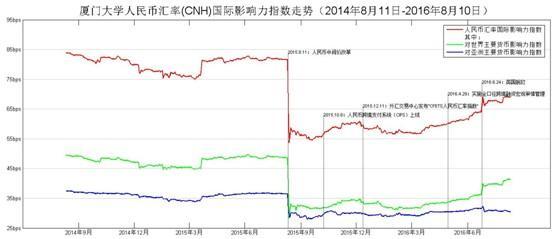 2016年6月6日厦大经济学科首次发布人民币汇率(CNY)国际影响力指数,就受到了社会各界的广泛关注。7月21日,厦门大学经济学科新增发布离岸人民币汇率(CNH)国际影响力指数,回顾人民币汇改十一周年的市场化和国际化历程。人民币影响力指数是厦大研究团队运用定量分析进行经济系统数据分析的典范,运用现代计量经济学方法与工具,以数据分析为基础实证研究人民币汇率在国际上和亚洲地区的影响力,也可对人民币汇改等政策实施以及英国脱欧等重大国际事件的影响进行了定量评估,增强了经济政策建议的科学性,是建设具有中国特色、高水平的新型经济学智库的有益尝试。