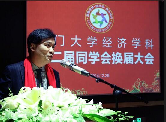 其次,第一届同学会会长罗兴平先生对过去一年同学会的活动进行了总结。他表示,从2013年3月份成立以来,同学会先后取得了以下成绩:在会员交流方面,成立了5个俱乐部:高尔夫俱乐部、读书会、航海俱乐部、养生俱乐部、文创俱乐部,并相继开展了丰富多彩的活动。同学会每年举办两次大型活动,即传统中秋博饼和迎新晚会,不仅让同学情谊得到升华,也更好地促进了跨班级的互动和交流。在学习方面,依托两院的平台,举办各类的论坛,邀请了如许小年、邱晓华、许宪春、石齐平等著名经济人物为会员们解读最新的经济动向。在社会责任方面,向厦门大学的定点扶贫单位——宁夏隆德县扶贫办捐献10万元,用于当地教学设施的建设。副会长李冬敏女士,也代表其个人和企业,捐赠了10万元。这足以体现我们爱心的触角正蔓延到各个角落。值得一提的是,在今年11月份,同学会成立台湾联络部,用于更好的利用两岸校友资源,进行资源整合,深化合作。尽管如此,同学会的工作还是存在诸多需要改进的地方,希望由下一届的领导班子来继续努力,交出更漂亮的答卷。