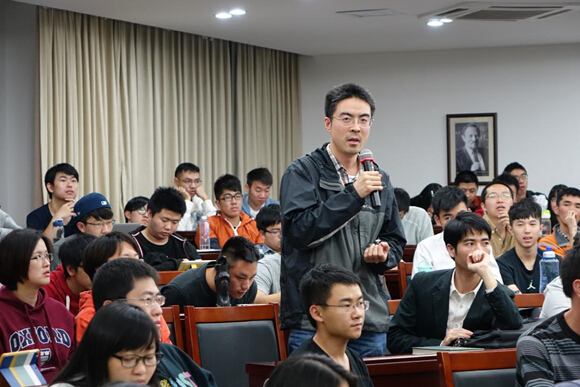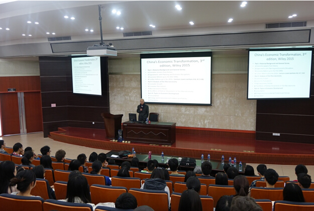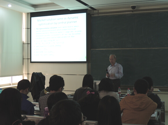 2014年11月18日上午10点,邹至庄教授在经济楼N402给WISE2012级和2013级本科班的学生授课。