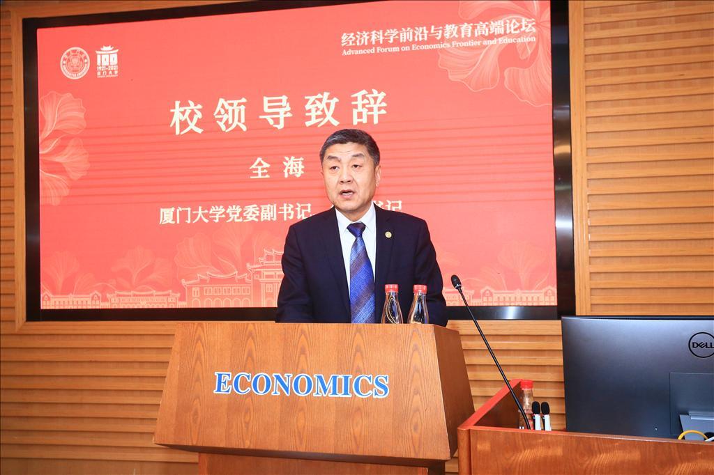 4月6日下午,论坛开幕式在厦大经济楼举行。厦大经济学科周颖刚教授主持论坛,厦门大学党委副书记、纪委书记全海致开幕词。全海对论坛的召开表示祝贺,对各位嘉宾的到来表示热烈欢迎。他提到,“发展更加公平更高质量的教育”已成为2021年的重点工作之一。厦大经济学科传承红色基因,紧密结合中国经济发展需求,建立了一整套与国际一流研究型大学接轨的高质量育人体系,教书育人、学科建设取得显著成效。全海表示,通过这次论坛,期待各位兄弟高校的专家学者为厦门大学以及中国经济学科的发展多提宝贵的意见和建议。