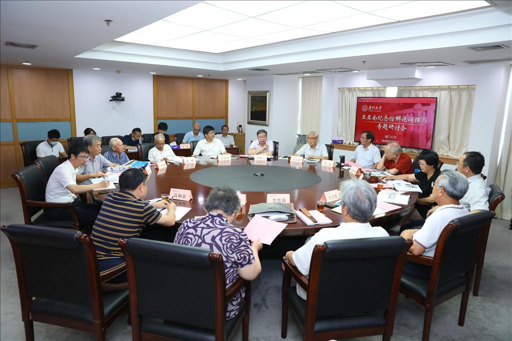 为更好筹备王亚南纪念馆建馆事宜,献礼2021年百年校庆暨王亚南校长120周年诞辰,7月8日上午,厦门大学王亚南纪念馆解说词撰写专题研讨会在颂恩楼1603会议室召开。会议特邀十五位校内外专家学者参与研讨,以线上线下相结合的方式,为建馆前期的解说词完善工作提供专业意见与宝贵线索。会议由校宣传部、社会科学处主办,厦门大学经济学院、王亚南经济研究院承办议。校党委常委、副校长杨斌出席并讲话,校党委常委、宣传部、教师工作部部长徐进功主持研讨会。