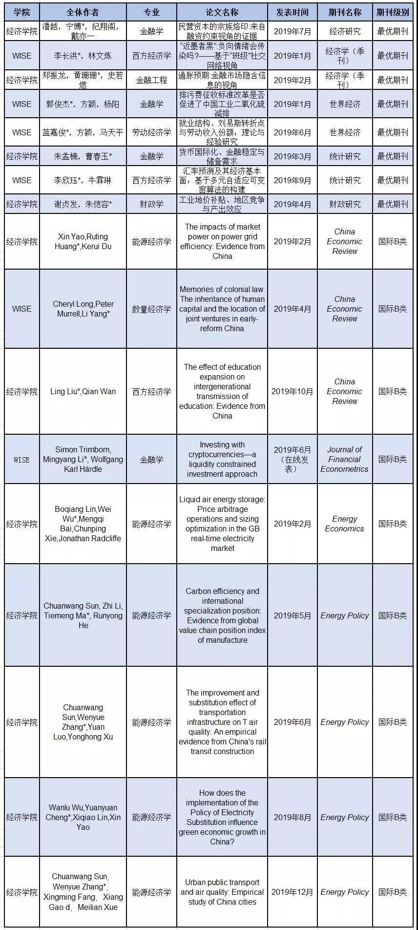 2019年,是厦门大学经济学科研究生培养取得丰硕成果的一年,经济学科的学子们在学院导师的带领和教导下在国内核心期刊和国际顶级期刊上的论文发表都取得了优异成绩。