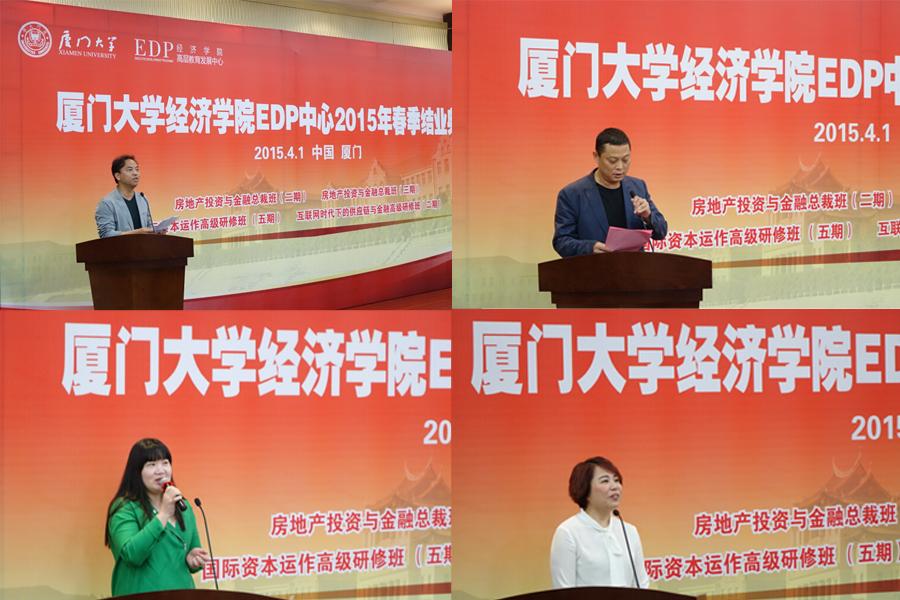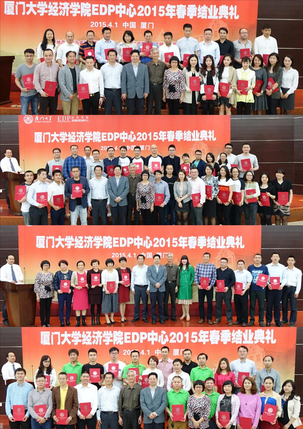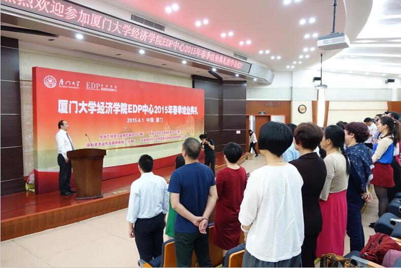 四月的厦大,春意盎然、莺飞草长,木棉花灿烂绽放。2015年4月1日,厦门大学经济学院EDP中心2015年春季结业典礼在经济学院N402隆重举办。