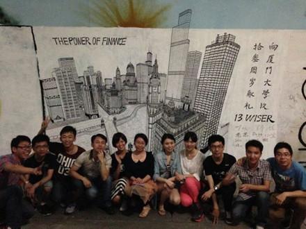 最后,这幅集众家力量的涂鸦作品,终于完美地呈现在眼前,WISE同学们按捺不住内心的欣喜,在涂鸦旁署上自己的名字,同时也希望这是对自己经济金融职业生涯的期许。