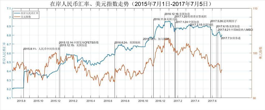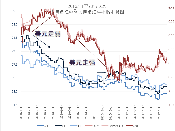 2017年6月15日,美联储FOMC会议公布6月利率决议,宣布再次上调基准利率目标范围25个基点至1%-1.25%。这是美联储自2015年以来第四次加息。尽管美联储频频加息,但因为特朗普经济政策的不确定性、美国经济数据不及预期等因素,美元指数维持了下降趋势。自2016年12月15日美联储加息以来至今,美元指数下跌将近7%,相对其它G20国家货币,人民币保持了相对稳定。