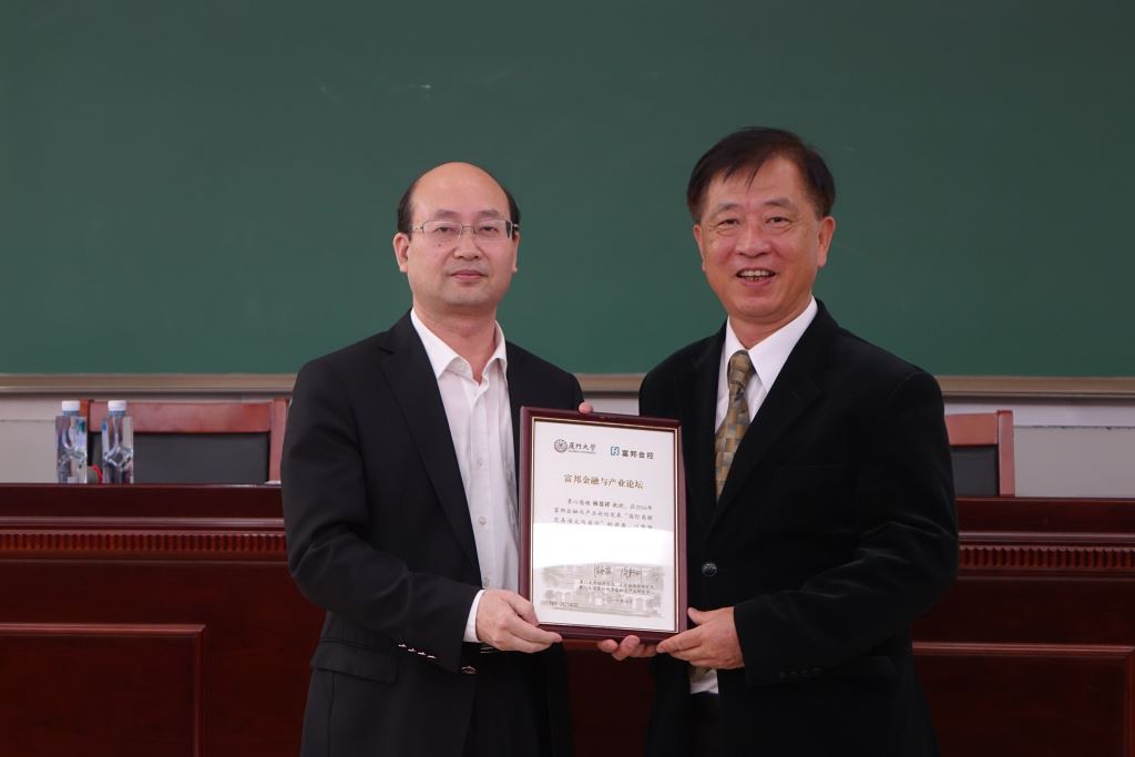 林教授本次讲座,是厦门大学富邦金融与产业论坛2016春季学期第二期讲座,吸引了广大师生的参与。讲座开始前,朱孟楠教授为林苍祥教授授予富邦两岸金融与产业研究中心讲座牌。