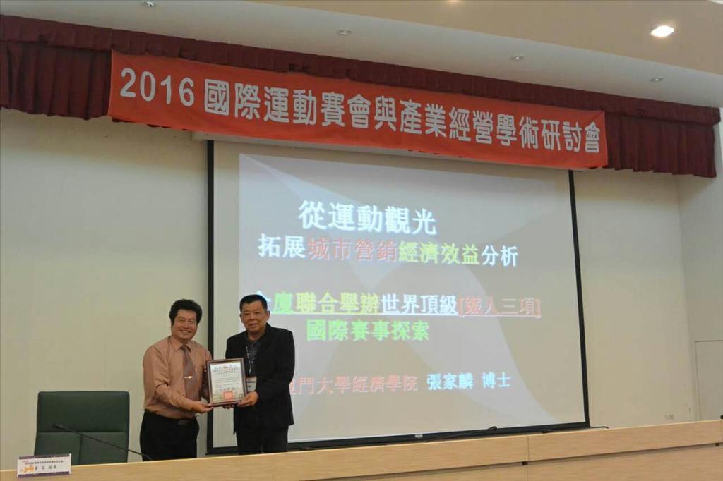 2月26日-27日,经济学院经济发展与传统文化中心主任张家麟教授应邀参加由金门县政府、金门大学主办的“2016国际运动赛会与产业经营管理学术研讨会”,并于27日上午做题为“从运动观光拓展城市营销经济效益分析 ——金厦联合举办世界顶级‘铁人三项’国际赛事探索”的报告。
