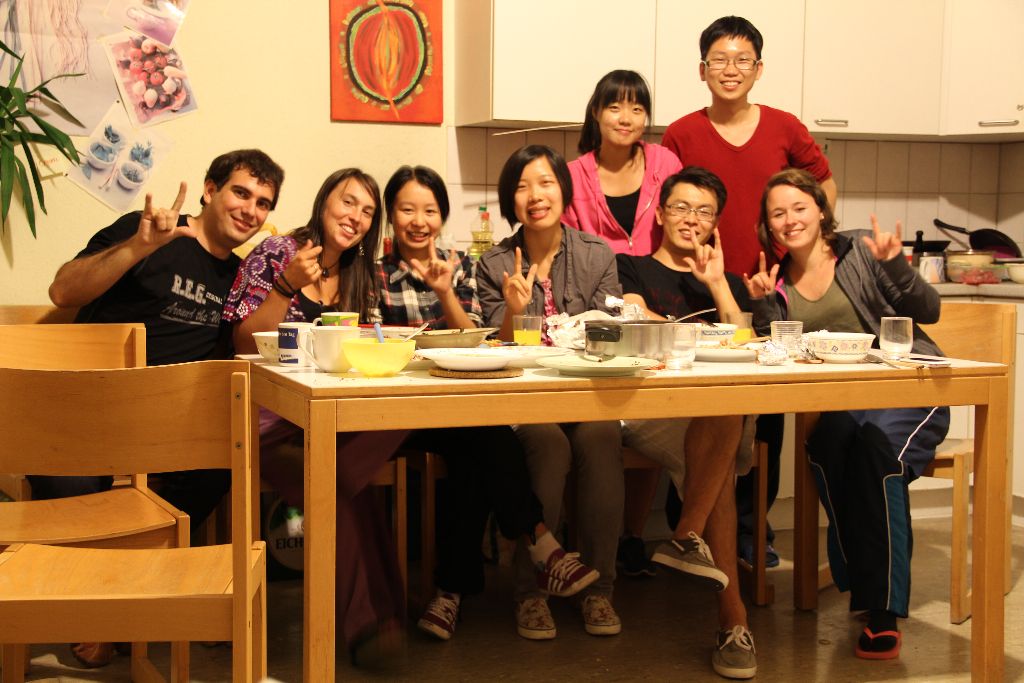 (2011级学生李爽、叶越赴德国曼海姆大学交流期间与舍友聚餐留影)