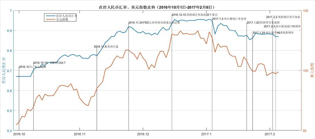 特朗普1月20日就任美国总统仅两周,公布了一系列“不按规矩出牌”(wild card)的行政命令,在国内和国际上遭遇巨大反弹,也令投资者担心美元为此受到冲击,再加上最近一段时间,美国经济数据平淡无奇,并未显现出美国经济持续复苏的活力,令此前上涨过猛的美元指数持续回调,如图1示。2月2日,美联储在2017年首次货币政策会议上维持当前利率水平不变,同时降低了3月份加息的可能性。