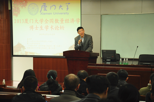 2013年12月21日,由厦门大学王亚南经济研究院、经济学院联合举办的“全国数量经济学博士生学术论坛”在经济楼N303开幕。本次论坛是厦门大学经济学科自去年举办博士生论坛以来的第二届活动,旨在利用厦门大学经济学科的学科优势,依托计量经济学教育部重点实验室(厦门大学)和福建省统计科学重点实验室的广泛学术资源和国际合作联系,为全国青年学者们搭建平台,提供了解和把握现代经济学和现代数量经济学的学术发展动态和最新研究成果的机会。