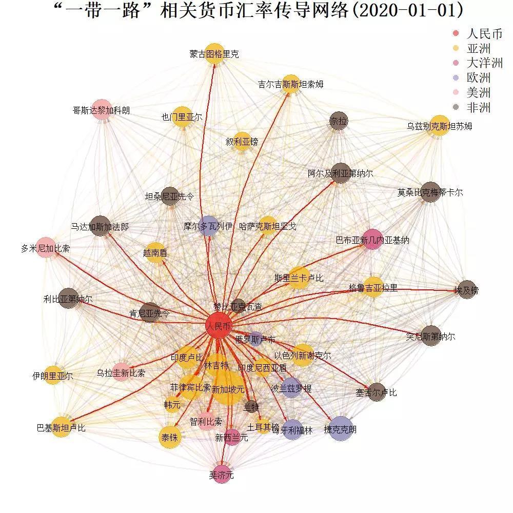 图2 “一带一路”倡议提出后参与国货币传导网络