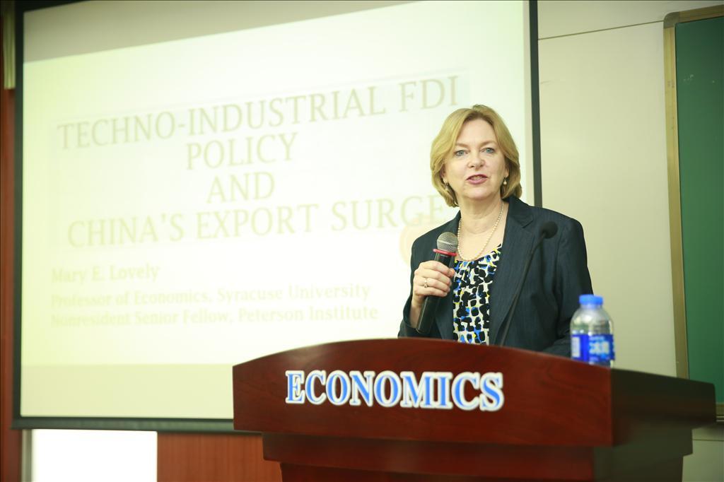 雪城大学的Mary Lovely教授作题为“Techno-industrial FDI Policy and China’s Export Surge”的主题演讲