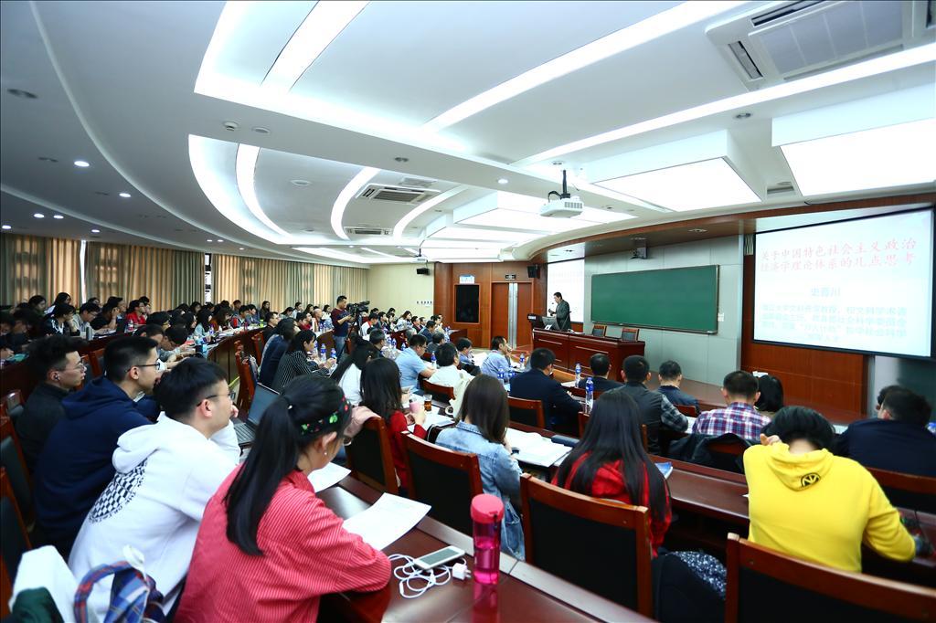 2018年4月7日,首届习近平新时代中国特色社会主义思想研讨会之“中国特色社会主义政治经济学学科建设院长论坛”在厦门大学经济楼举行。发展中国家科学院院士洪永淼教授在论坛开幕式致辞。论坛分上下两段,分别由东北财经大学副校长王维国、清华大学政治经济学研究中心主任蔡继明主持。
