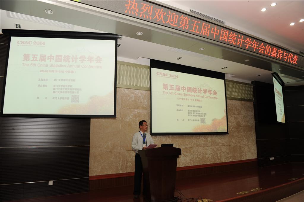 洪永淼教授介绍了厦大经济学科的成就以及统计学科65年的辉煌历史与发展现状。他表示,近几年来,厦大经济学科致力于推动中国经济学的国际化和现代化,大力促进厦大理论经济学、应用经济学和统计学三个一级学科之间的交叉融合、优势互补,在创新中形成更具活力和竞争力的学科体系。在当前国内统计学进入一个新发展阶段的背景下,因应统计学科的发展趋势,厦大统计学科在继续坚持与发展经济统计学科的同时,积极培育数理统计学和计量经济学等学科,努力推动这些方法论学科在经济实证研究中的应用。依托王亚南经济研究院和经济学院统计系,积极引入了数理统计学、计量经济学等一批相关专业的海外学者,厦大统计学科得到了全面的发展和壮大。他希望在此次国内统计学的盛会中,能够得到国家统计部门领导的指导,增进与兄弟院校同行的了解与交流,并加强合作,共同推动中国统计学以及相关学科的交叉融合和繁荣发展。
