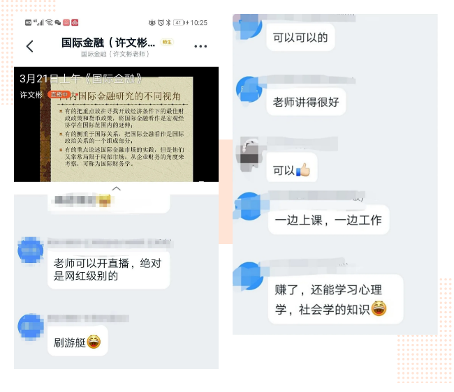 针对课程班学员均为在职人员的特点,除在周末直播时间外,允许学员在一周内通过平台回放功能利用业余时间完成学习,充分发挥网络教学的优势。网络课堂上,老师不再仅仅是知识的讲授者,还成为了学习活动的组织者,学员们也成为了学习活动的参与者和课程知识的构建者。
