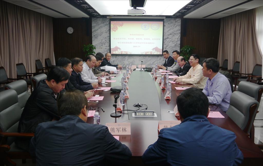 3月9日上午,延安职业技术学院、发改委、城管局、招商局、水务局等单位领导一行13人莅临厦大经济学科与厦门大学水科技与政策研究中心访问交流。洪永淼教授、朱孟楠教授、王艺明教授、郭晔教授、靳涛教授、蓝伟光博士等参加座谈。