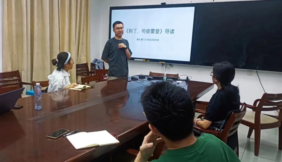 10月9日下午,经济学院“师说•生语”经典原著读书会第16期顺利举行。本次读书会学习的经典原著篇目为《毛泽东选集》第四卷中的《别了,司徒雷登》。“师说•生语”经典原著读书会充分发挥学院马克思主义政治经济学研究重镇的优势,以师生党支部共建的形式,每一期活动根据主题,挑选不同时代不同背景的经典文章,邀请理论研究骨干党员教师与学生共同学习研讨经典原著,不断强化教师党员对青年学生的思想引领和价值塑造,进一步完善学院三全育人工作格局。