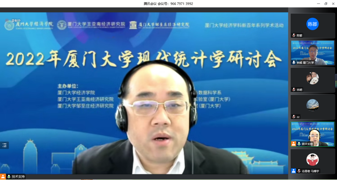 12月17-18日,厦门大学现代统计学研讨会以线上形式圆满举办。会议邀请5名国内知名学者担任大会特邀报告嘉宾,另设15个分论坛,共59篇论文与会报告。为期一天半的议程中,共超1000人次线上听会。该研讨会也是厦门大学经济学科新百年系列学术活动之一。