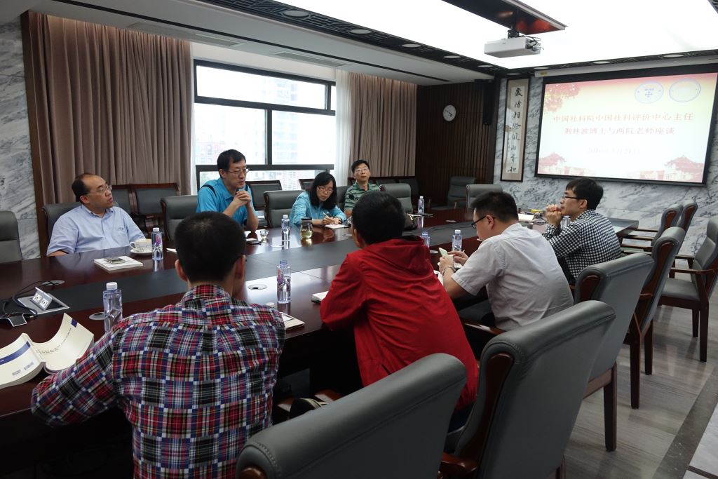 讲座结束后,荆林波研究员还与两院老师进行了座谈会,荆林波研究员首先为大家对现在主流的几种期刊评价体系做了简短的介绍,并详细介绍了中国社科院期刊评价体系的创新之处及优势与不足。之后,就备受关注的智库的话题,荆林波研究员介绍了中国社科院的智库排名,该排名具备方法科学,全要素,定量定性相结合等优势,获得了广泛的好评与认可。最后,荆林波研究员就各位老师的问题一一作了解答。