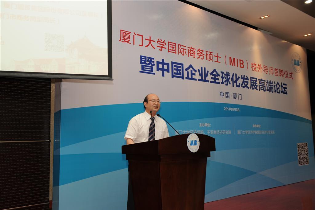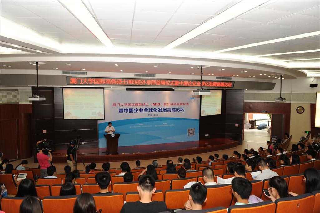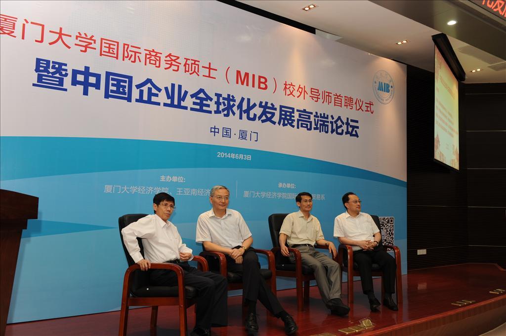在当今世界经济复杂多变、全球市场需求不振、企业国际化竞争日益激烈的世界经济发展新趋势下,中国企业尤其是厦门企业应该如何坚持“走出去”的全球化发展道路,不断发掘商机、开拓国际市场?如何进一步培养知悉国际商务发展动态的高端商务人才?6月3日下午,由厦门大学经济学院、王亚南经济研究院(WISE)主办,厦门大学经济学院国际经济与贸易系承办的“厦门大学国际商务硕士(MIB)校外导师首聘仪式——暨中国企业全球化发展高端论坛”在我校经济楼N402报告厅隆重举行。