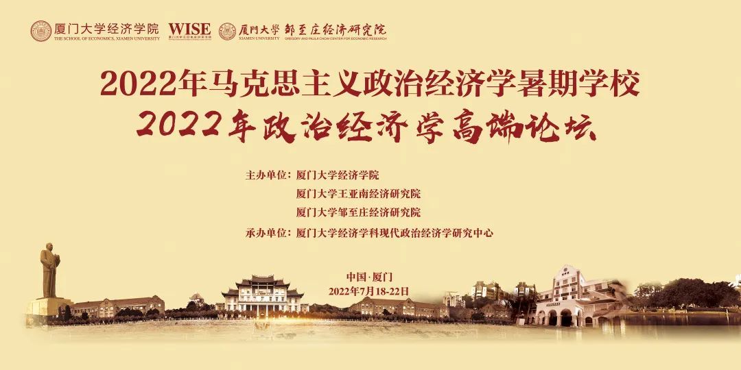 暑期学校期间,厦大经济学科将于7月20日举办2022年政治经济学高端论坛,邀请暑期学校授课专家及数位马克思主义政治经济学研究领域的中青年学者深入探讨马克思主义政治经济学的前沿动态。