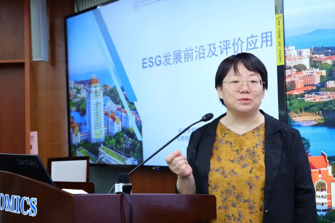 接着,她从多年来企业社会责任一直存在着模糊化的现状出发,指出要规避市场中劣币驱逐良币的现象,就需要有一套系统性的可量化、可比较,并可持续改善的评价标准,ESG的出现恰恰使企业履行社会责任走向了这样的道路。通过进一步分析全球ESG政策法规和市场演变,李文指出近两年来ESG在中国的发展步入快速路,并从数据统计与评级方面强调了ESG与当前统计学的密切关联,为同学们拓展了今后择业的新方向和新领域。她接着结合具体案例介绍了ESG指数通过数据的采集、处理、评价形成的过程以及ESG评价在信用评估、股票投资等多元化的应用场景,并进一步强调了ESG评级正受到越来越多的上市公司和金融机构的重视。