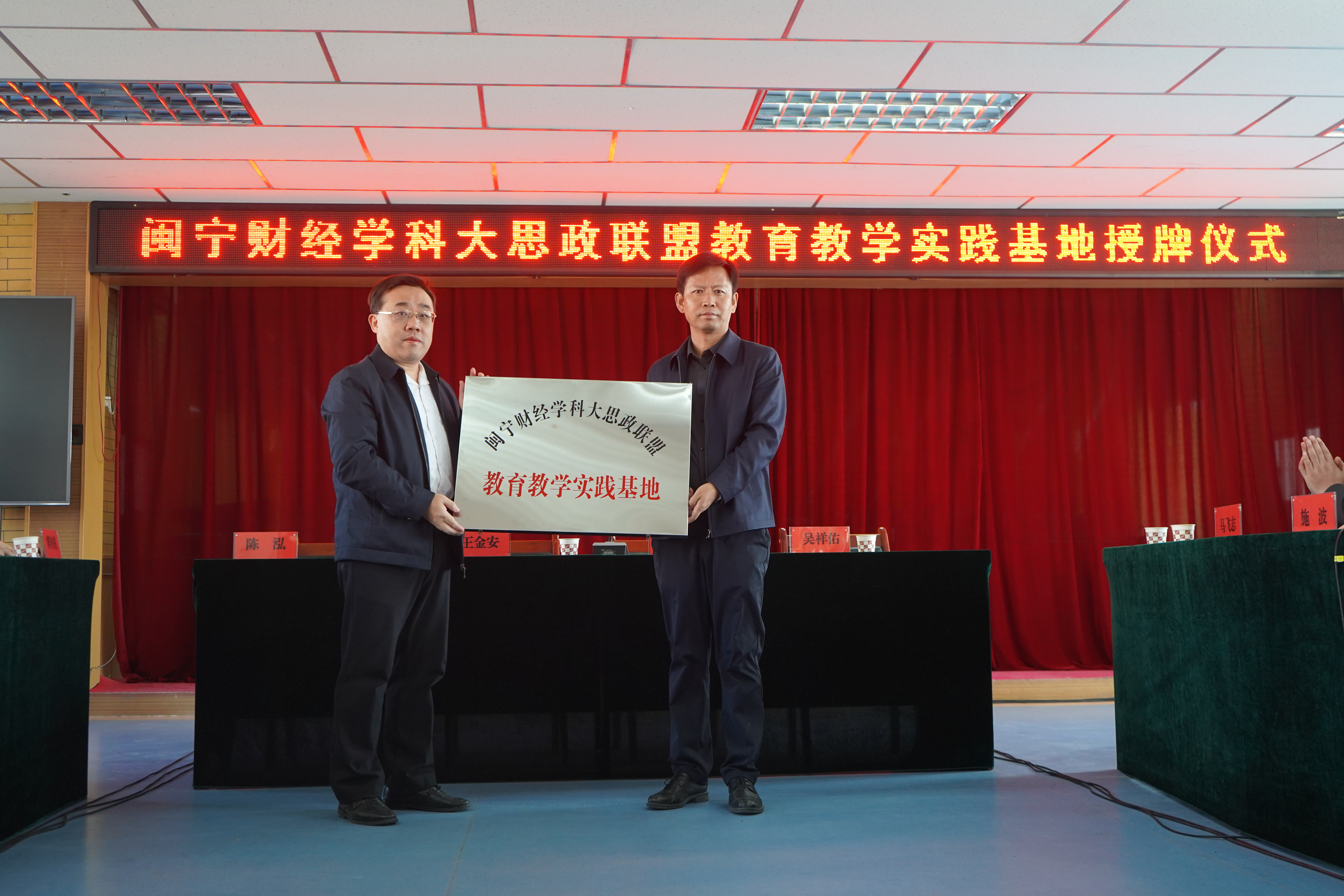 最后,厦门大学经济学院、王亚南经济研究院院长周颖刚教授与永宁县委常委、闽宁镇党委书记周德强为“闽宁财经学科大思政联盟教育教学实践基地”进行授牌。