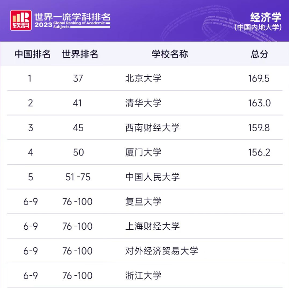 10月27日,高等教育评价专业机构软科正式发布2023“软科世界一流学科排名”(ShanghaiRanking's Global Ranking of Academic Subjects)。厦门大学经济学科的“经济学”位列全球排名前50,中国内地大学排名第4。