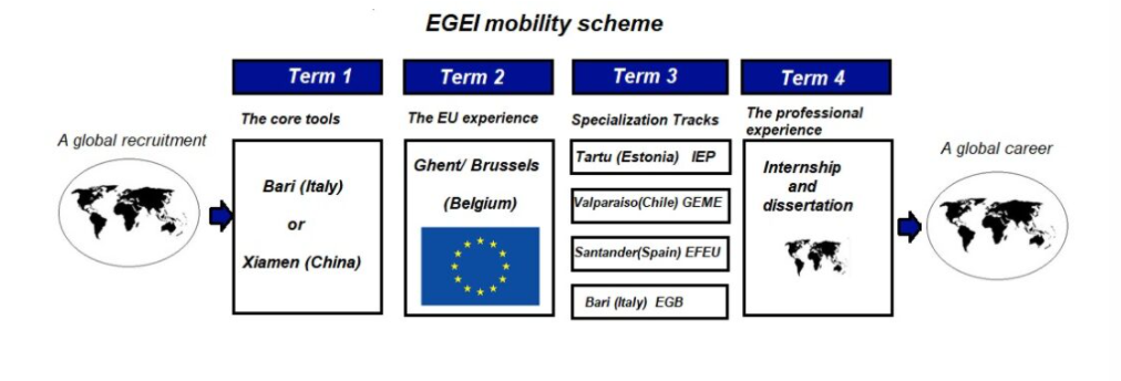 2020年,EGEI项目第三次获得欧盟“伊拉斯莫斯”荣誉项目的资助和认证,项目目前由中国厦门大学、意大利巴里大学、比利时根特大学、比利时欧洲政策研究中心、西班牙坎塔布里亚大学、法国里尔大学、爱沙尼亚塔尔图大学和智利费德里科圣玛丽亚科技大学等在内的全球八大高校及科研机构组成,面向全世界招收优秀青年学生进行经济学硕士培养。