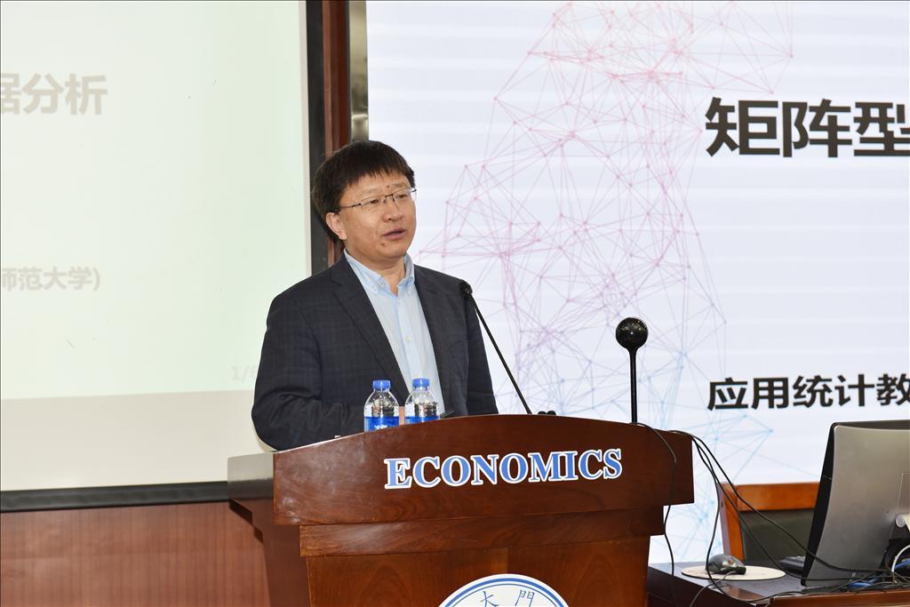 4月16日上午,东北师范大学副校长郭建华教授做客厦门大学南强学术系列讲座,带来一场题为“矩阵型时间序列数据分析”的学术讲座。讲座由王亚南经济研究院、经济学院钟威教授主持。郭建华教授为国务院学位委员会学科评议组统计学科召集人,国家杰出青年科学基金项目获得者,国家级人才(教育部),“新世纪百千万人才工程”国家级人选,国务院政府特殊津贴获得者,国际数理统计学会会士,国际统计学会当选会员,国家社会科学基金学科规划评议组成员,国家自然科学基金会评专家,Journal of the American Statistical Association、《统计研究》等学术期刊编委。