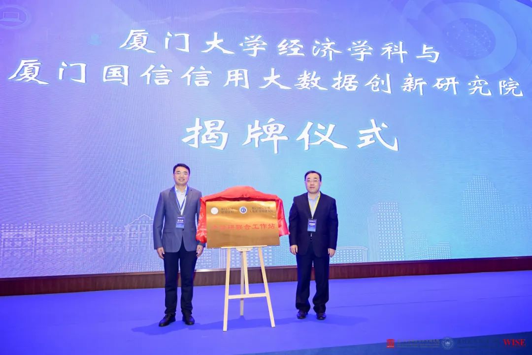 随后,论坛举办了厦大经济学科与厦门国信信用大数据创新研究院揭牌仪式,周颖刚与厦门国信信用大数据创新研究院院长曾光辉参与揭牌。双方将合作建立“厦门大学经济学科-国信研究院产学研联合工作站”,共建信用大数据联合实验室,今后将在科研、教学、培训等方面开展合作。
