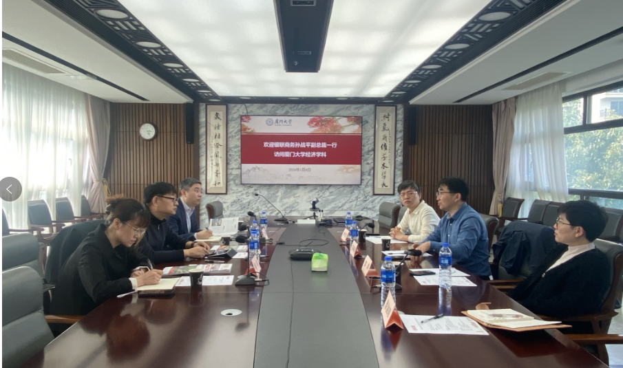 1月8日,银联商务股份有限公司孙战平副总裁一行到访经济学科,王亚南经济研究院副院长陈海强教授,经济学院副院长郭晔教授、计量经济学教育部重点实验室(厦门大学)副主任钟锃光等与来宾会面,双方进行了友好交流座谈。