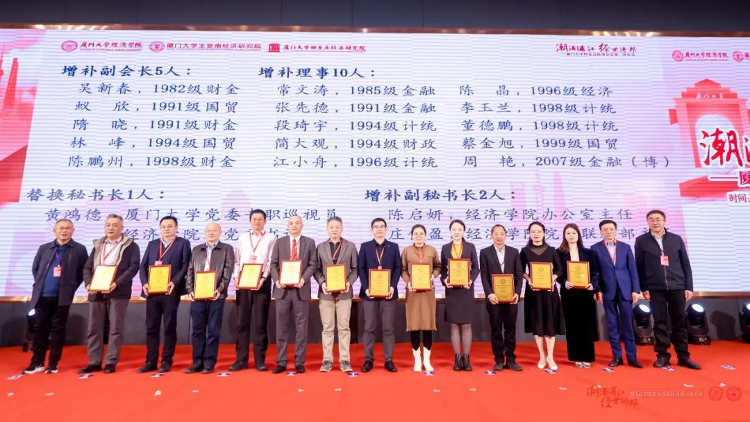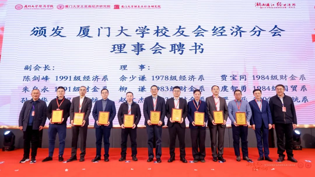 厦大经济学科的蓬勃发展离不开广大院友的关爱与支持,厦大经济人感恩、担当的独特气质源源不断为学科发展注入新能量。厦门大学校友会经济分会的成立与壮大是广大经济学科校友与母校“双向奔赴”的共同心愿。今后,厦大校友会经济分会将继续担当增进广大校友与经济学科共同发展、进步的使命,在更高水平上为母校和经济学科的建设和发展发挥积极作用,再创厦大经济学科新辉煌!