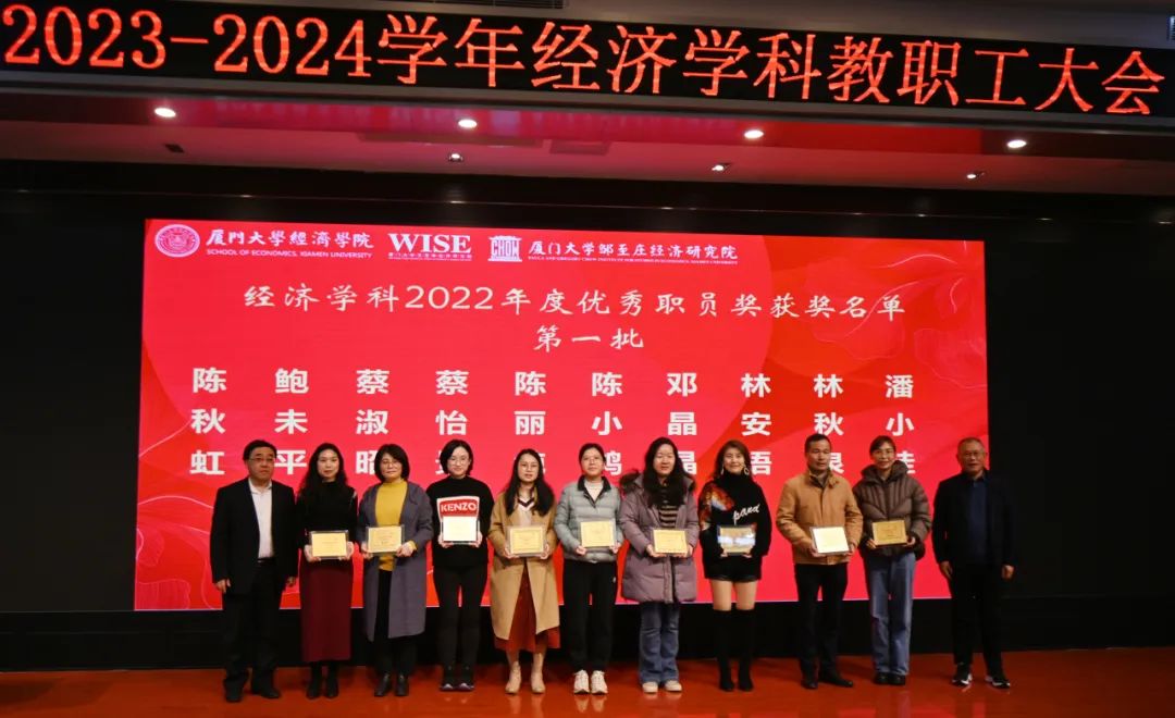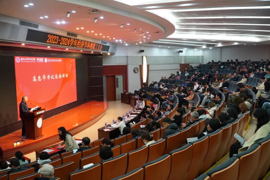 3月1日,厦门大学经济学科2023-2024学年教职工大会在经济楼举行。会上,学院及各系所中心负责人就过去一年的工作进行总结,同时,面对新形势、新目标和新任务,规划和展望新一年的工作。大会由经济学院党委副书记李静主持。经济学科全体教职工出席大会。