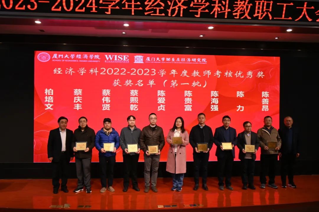 为表彰教职员工在工作中的卓越成绩,感谢他们的辛勤奉献,大会举行经济学科年度优秀教职员工颁奖仪式,分别颁发“2022-2023学年度教师考核优秀奖”“2022年度优秀职员奖”“2022-2023学年度优秀辅导员奖”,以及“2022年度优秀物业员工奖”。经济学科历来高度重视师资队伍、行政技术队伍、党政工作队伍等的建设,通过出台一系列举措,致力于打造师德高尚、业务精湛、充满活力的高素质教职工团队,为进一步提升科研创新竞争力,全面提升人才培养质量奠定扎实基础。