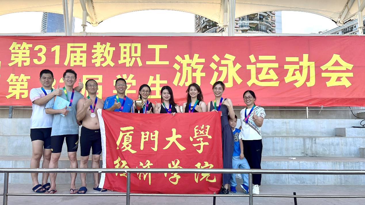 6月23日,厦门大学第31届教工游泳运动会暨第32届学生游泳运动会在王清明游泳馆落下帷幕。经过全天的激烈比赛,经济学院教工游泳队在本届游泳比赛中表现出色,获得教工团体总分第二名的好成绩。