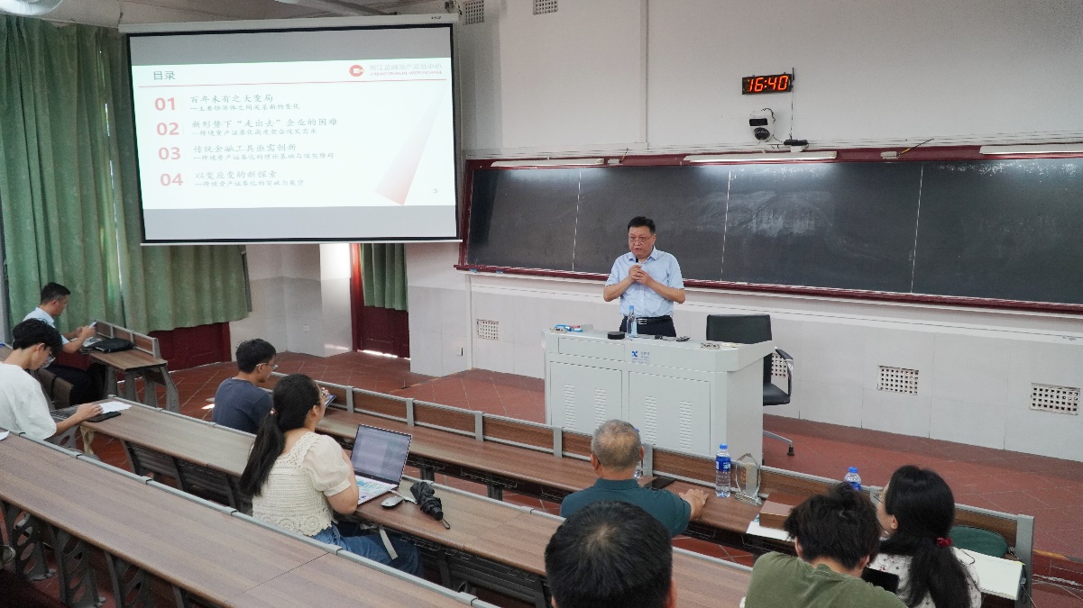7月19日下午,厦大经济学科2024年夏季学期杰出校友系列讲座第六讲在群贤二102教室顺利举行,浙江金融资产交易中心股份有限公司董事长兼总经理丁建林应邀作了题为“跨境资产证券化--助力中国企业走出去新探索”的精彩讲座。经济学院党委书记高忠华出席讲座并为主讲人颁授讲座纪念牌。