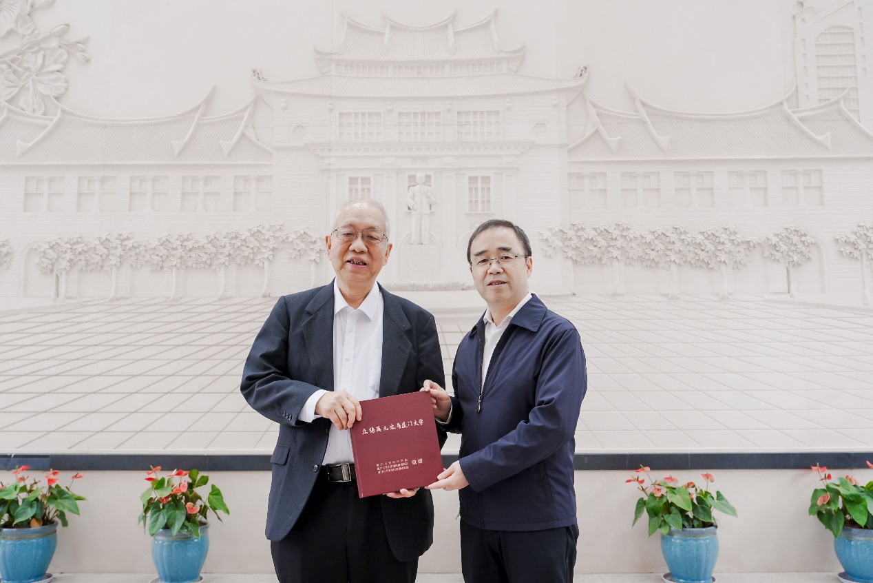 为表示对丘镇英先生的深切怀念和崇高敬意,经济学院党委书记高忠华,经济学院、王亚南经济研究院院长周颖刚分别向丘成桐赠送《丘镇英先生与厦门大学》纪念册和《厦门大学经济学科百年史》,丘成桐回赠了《丘镇英先生哲学史讲稿》。