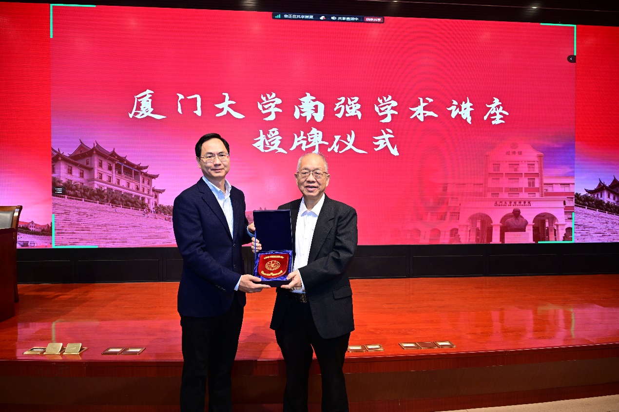 随后,丘成桐以“训练和提拔杰出人才的思考”为题开讲。本期讲座是“邹至庄讲座”杰出学者论坛暨厦门大学南强学术讲座,厦门大学党委常委、副校长吴超鹏致辞,并为丘成桐先生颁发南强讲座纪念牌。