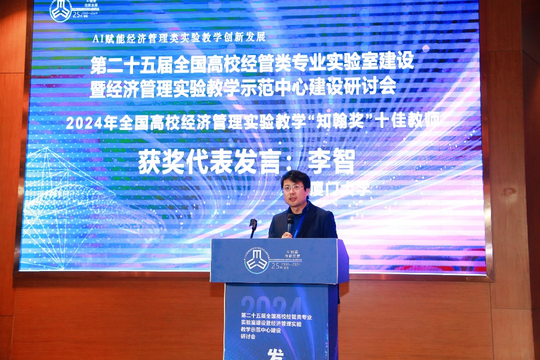 11月30日,由国家级实验教学示范中心联席会经济与管理学科组主办、贵州财经大学承办的“第二十五届全国高校经管类专业实验室建设暨经济管理实验教学示范中心建设研讨会”在贵阳举行,大会颁发了2024年全国高校经济与管理实验教学“知翰奖”十佳教师奖,厦门大学厦门大学经济学院财政系、王亚南经济研究院、邹至庄经济研究院李智副教授获此殊荣。