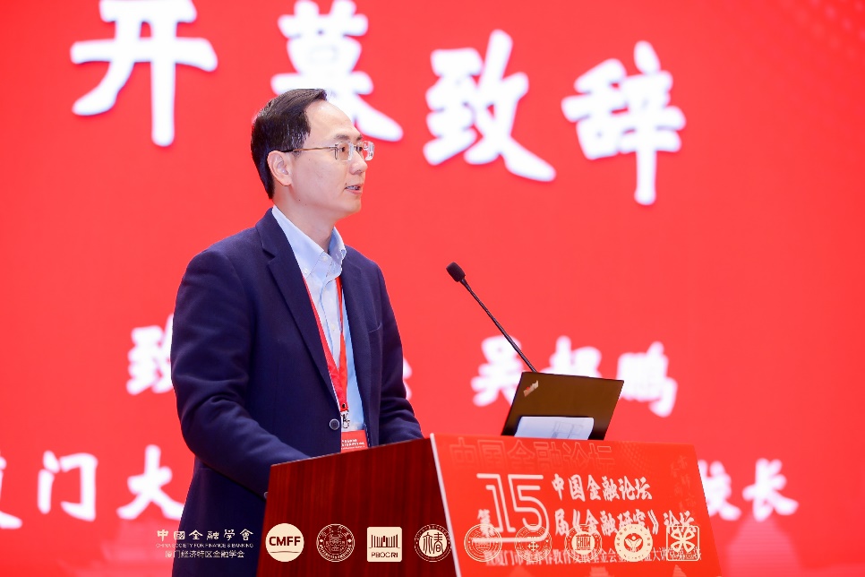 12月14日上午,中国金融论坛·第十五届《金融研究》论坛于在厦门大学科学艺术中心开幕。本届论坛由中国金融学会、中国金融论坛、厦门大学联合主办,中国人民银行金融研究所,厦门经济特区金融学会,厦门大学经济学院、王亚南经济研究院、邹至庄经济研究院和厦门市张亦春教育发展基金会承办,闽都陈嘉庚公益基金会、厦门国际银行股份有限公司协办。多名金融领域领导、专家、学者参会,共同探讨金融强国建设与中国式现代化这一主题。